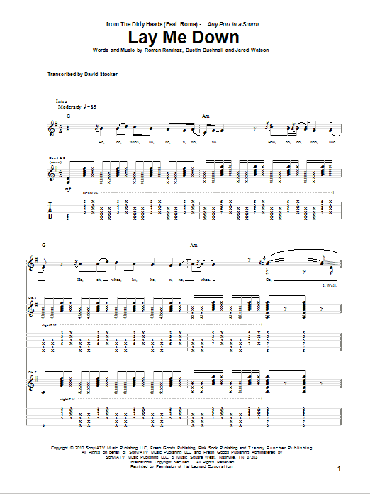 The Dirty Heads Lay Me Down (feat. Rome) sheet music, chords, lyrics - Printable PDF for Guitar Tab
