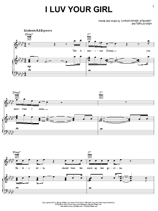 The Dream I Luv Your Girl sheet music, chords, lyrics - Printable PDF for Piano, Vocal & Guitar (Right-Hand Melody)