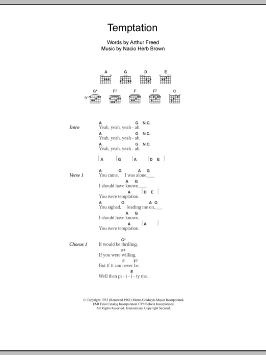 The Everly Brothers Temptation sheet music, chords, lyrics - Printable PDF for Lyrics & Chords