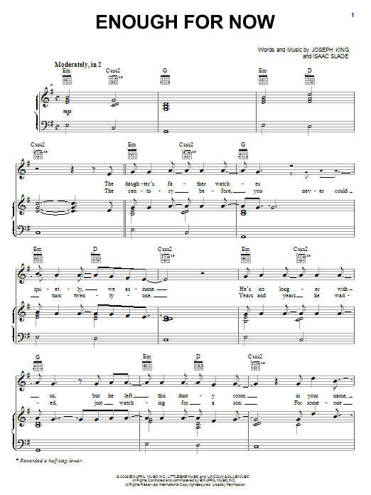 So, go ahead and download Enough For Now sheet music and start playing this wonderful score in bare minutes.