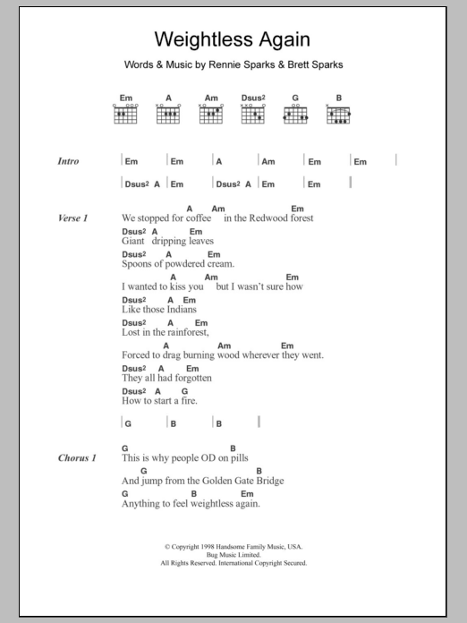 The Handsome Family Weightless Again sheet music, chords, lyrics - Printable PDF for Lyrics & Chords