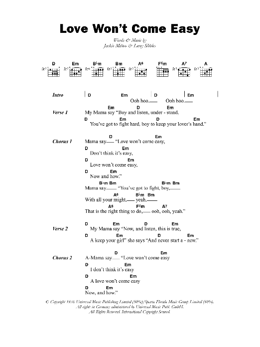 So, go ahead and download Love Won't Come Easy sheet music and start playing this wonderful score in bare minutes.