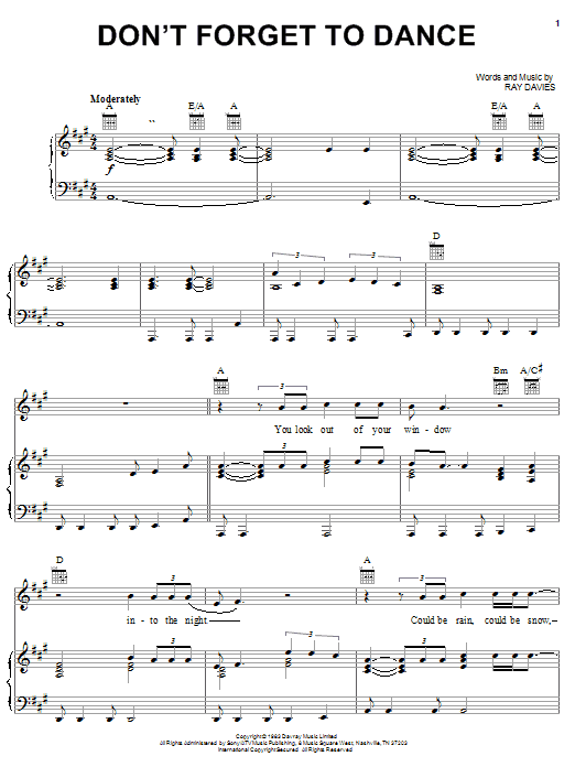 The Kinks Don't Forget To Dance sheet music, chords, lyrics - Printable PDF for Piano, Vocal & Guitar (Right-Hand Melody)