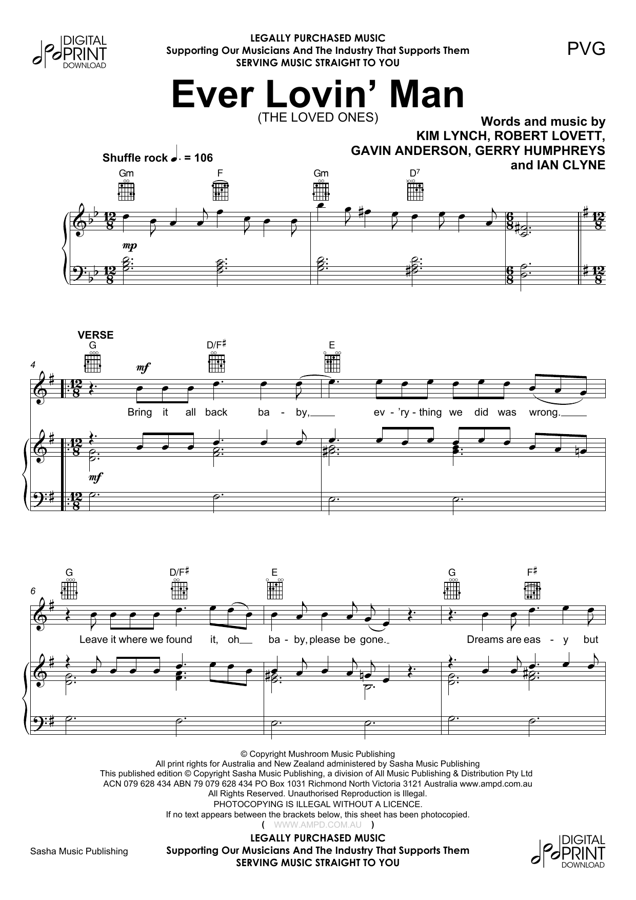 The Loved Ones "Ever Lovin Man" Sheet Music