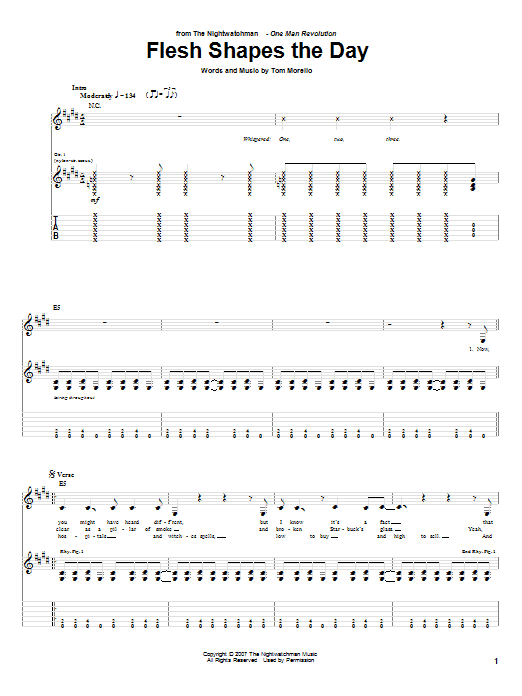 The Nightwatchman Flesh Shapes The Day sheet music, chords, lyrics - Printable PDF for Guitar Tab