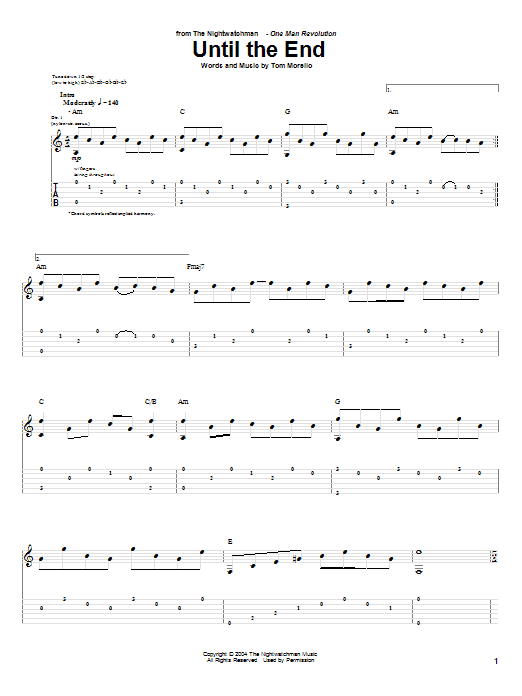 The Nightwatchman Until The End sheet music, chords, lyrics - Printable PDF for Guitar Tab