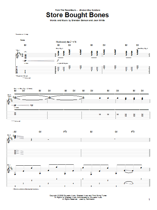 The Raconteurs Store Bought Bones sheet music, chords, lyrics - Printable PDF for Guitar Tab
