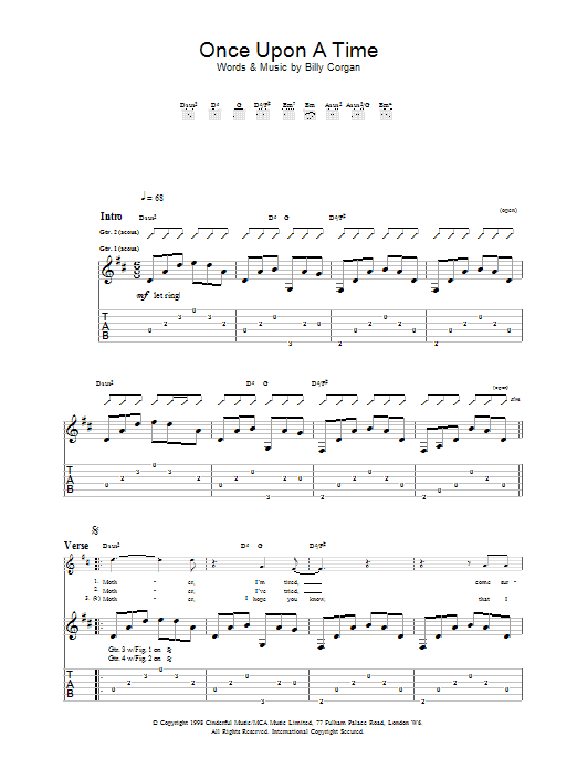 The Smashing Pumpkins Once Upon A Time sheet music, chords, lyrics - Printable PDF for Guitar Tab