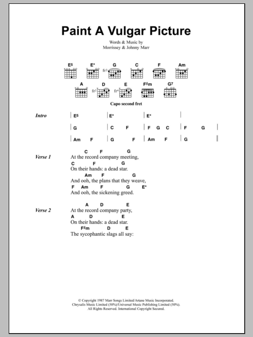 The Smiths Paint A Vulgar Picture sheet music, chords, lyrics - Printable PDF for Lyrics & Chords