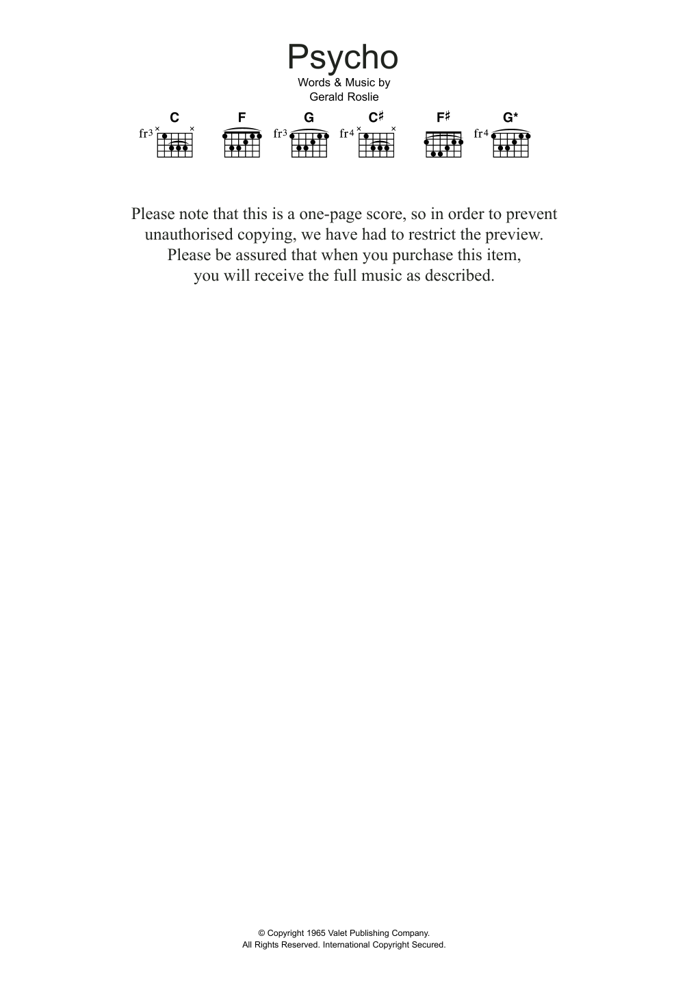 * Click playback or notes icon (wheel cog) at the bottom of the interactive music notes viewer and check "Psycho" playback & transpose functionality prior to purchase.