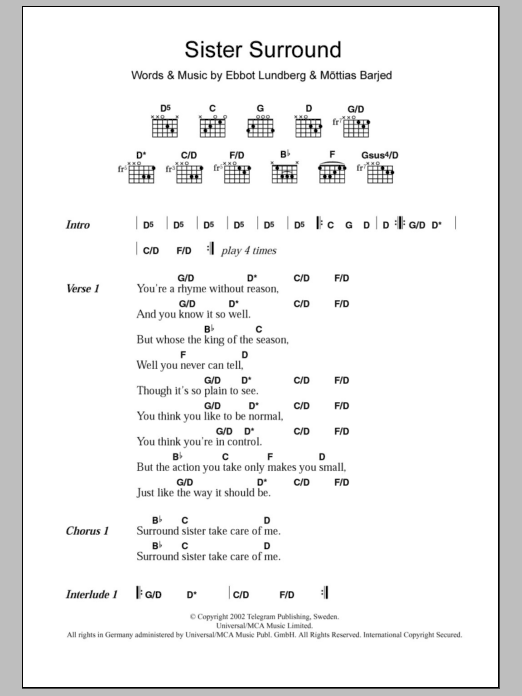 The Soundtrack Of Our Lives Sister Surround sheet music, chords, lyrics - Printable PDF for Lyrics & Chords