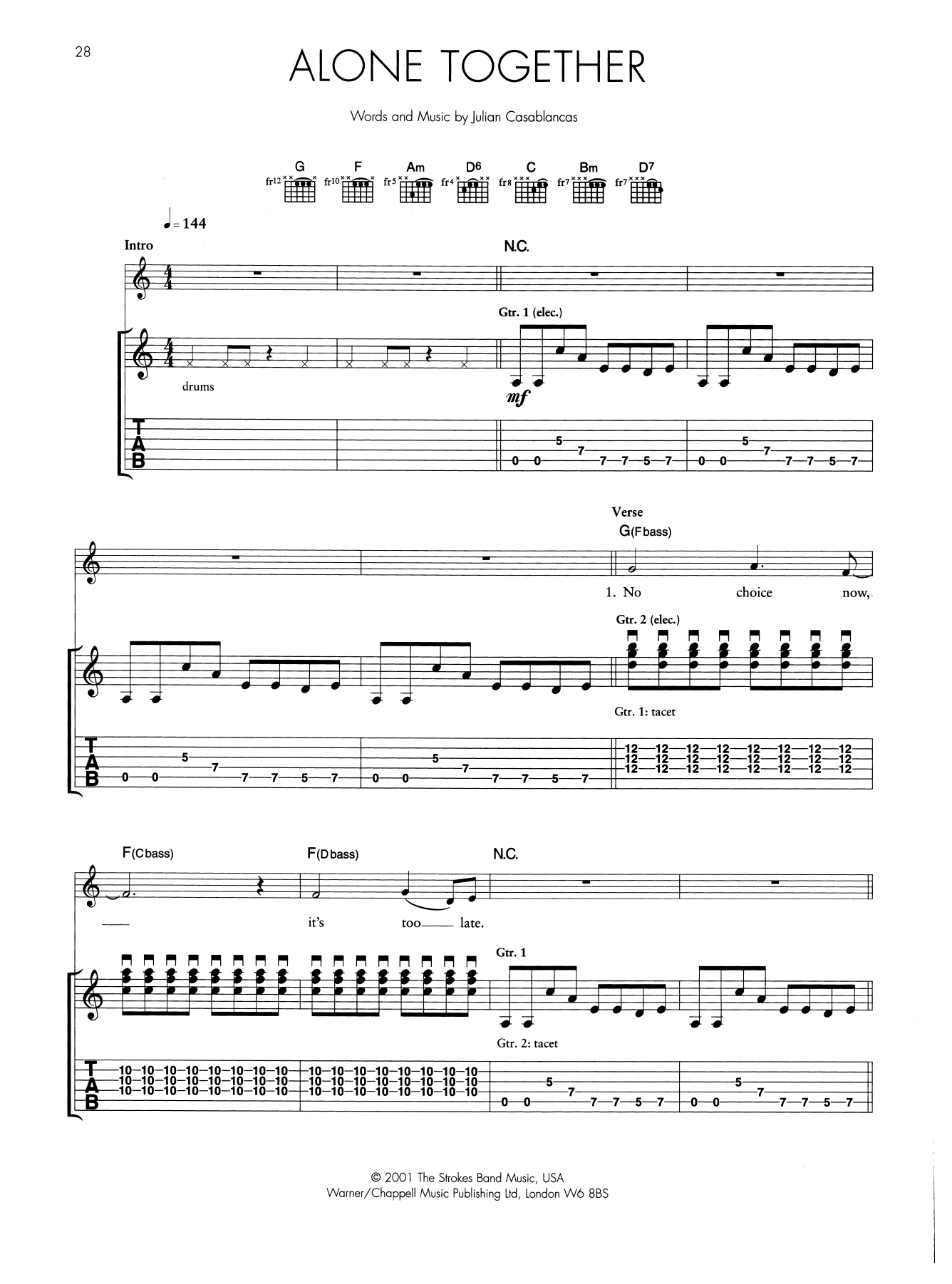 The Strokes Alone Together sheet music, chords, lyrics - Printable PDF for Guitar Tab
