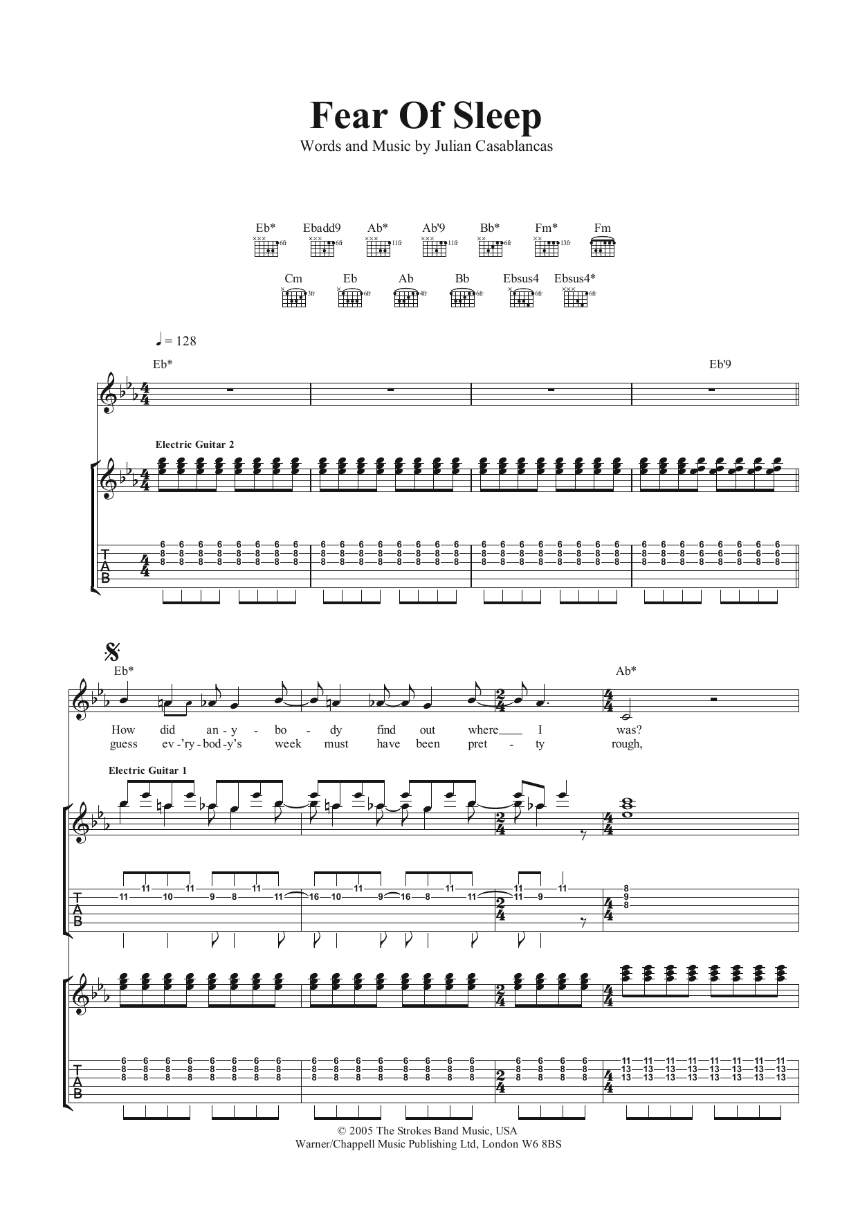Download 11-Page The Strokes Fear Of Sleep sheet music | Printable PDF Digital Notes