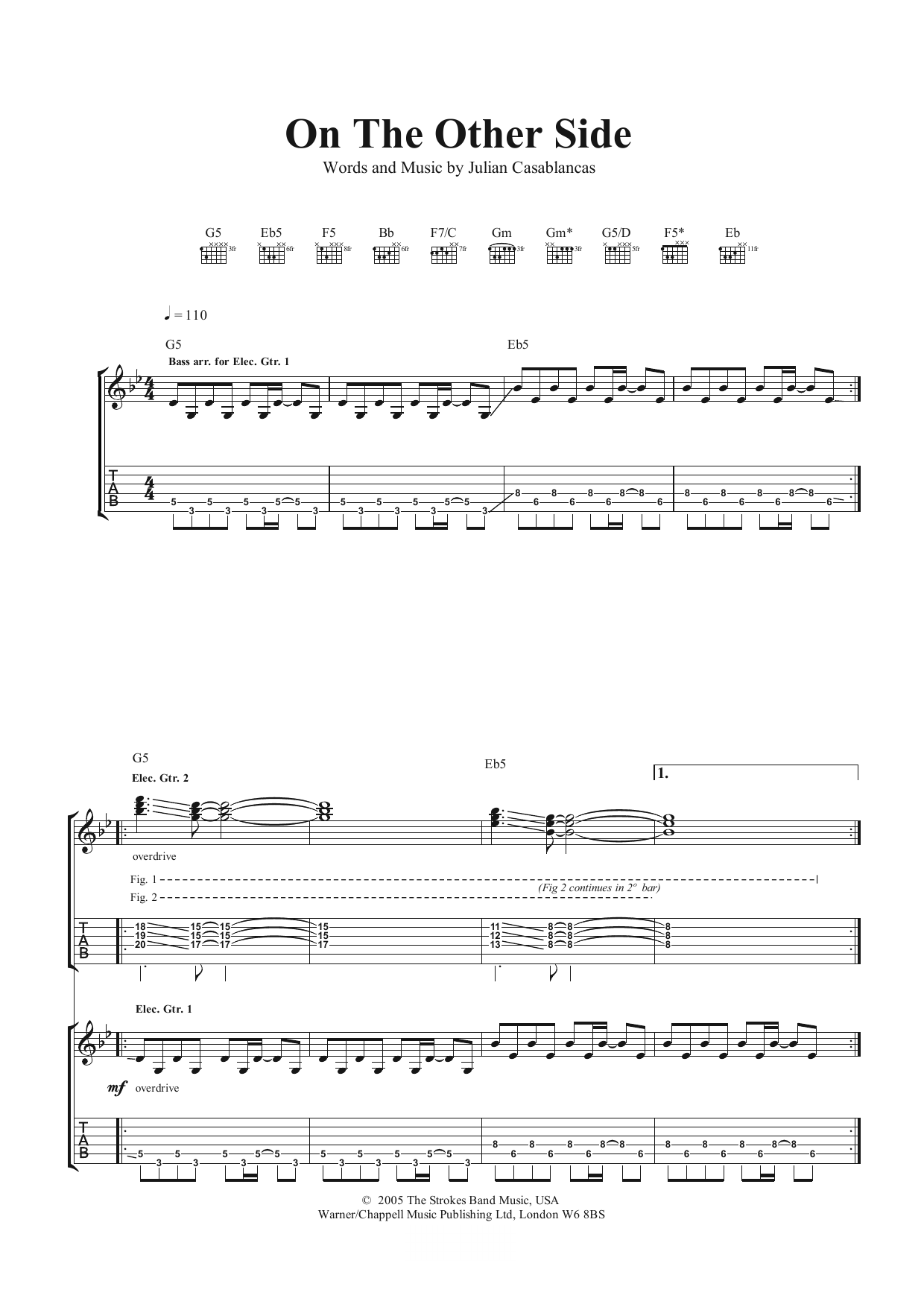 The Strokes On The Other Side sheet music, chords, lyrics - Printable PDF for Guitar Tab
