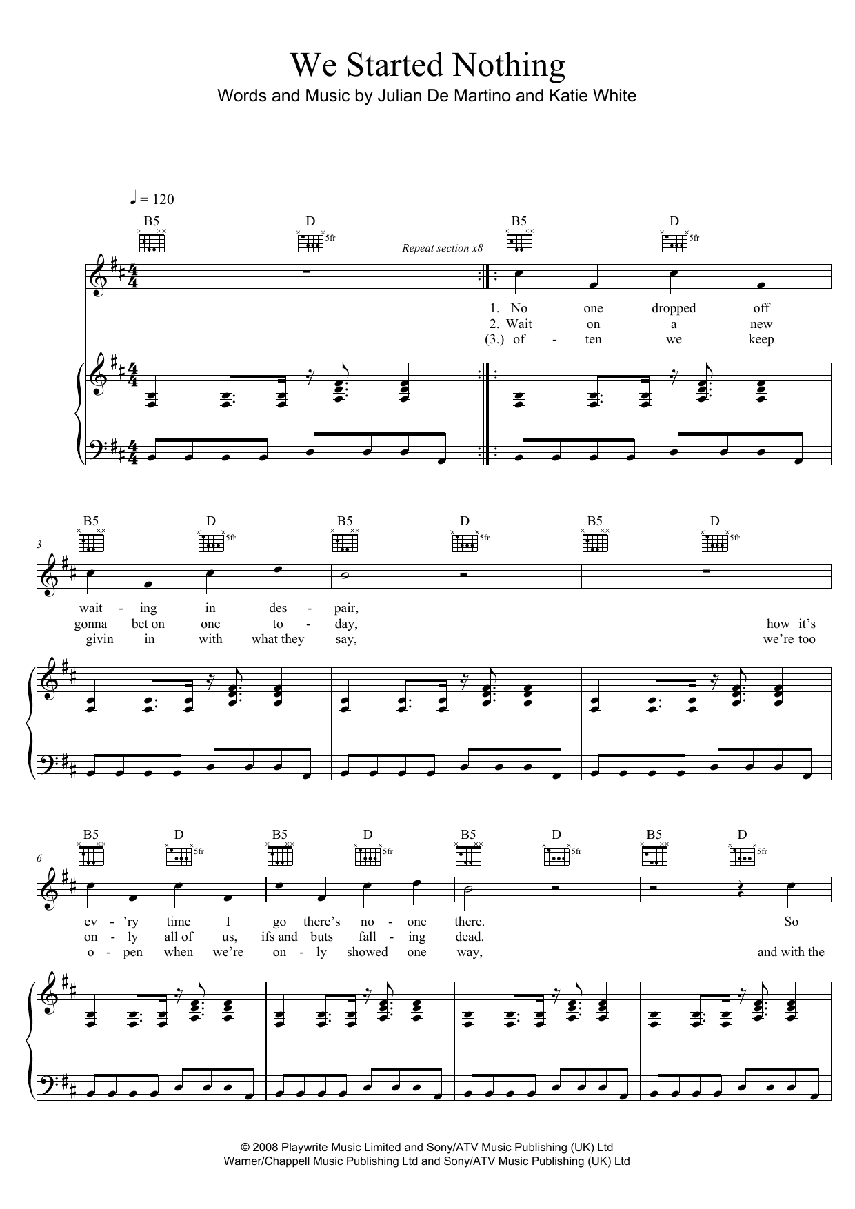 The Ting Tings We Started Nothing sheet music, chords, lyrics - Printable PDF for Piano, Vocal & Guitar (Right-Hand Melody)