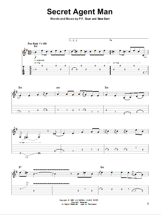 Secret Agent Man Sheet Music Sample