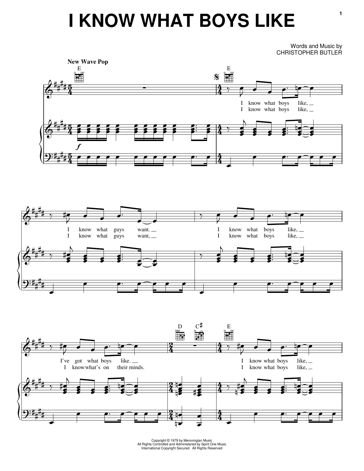 The Waitresses I Know What Boys Like sheet music, chords, lyrics - Printable PDF for Piano, Vocal & Guitar (Right-Hand Melody)