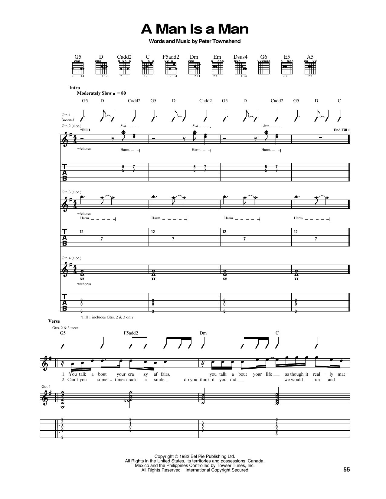 The Who A Man Is A Man sheet music, chords, lyrics - Printable PDF for Guitar Tab