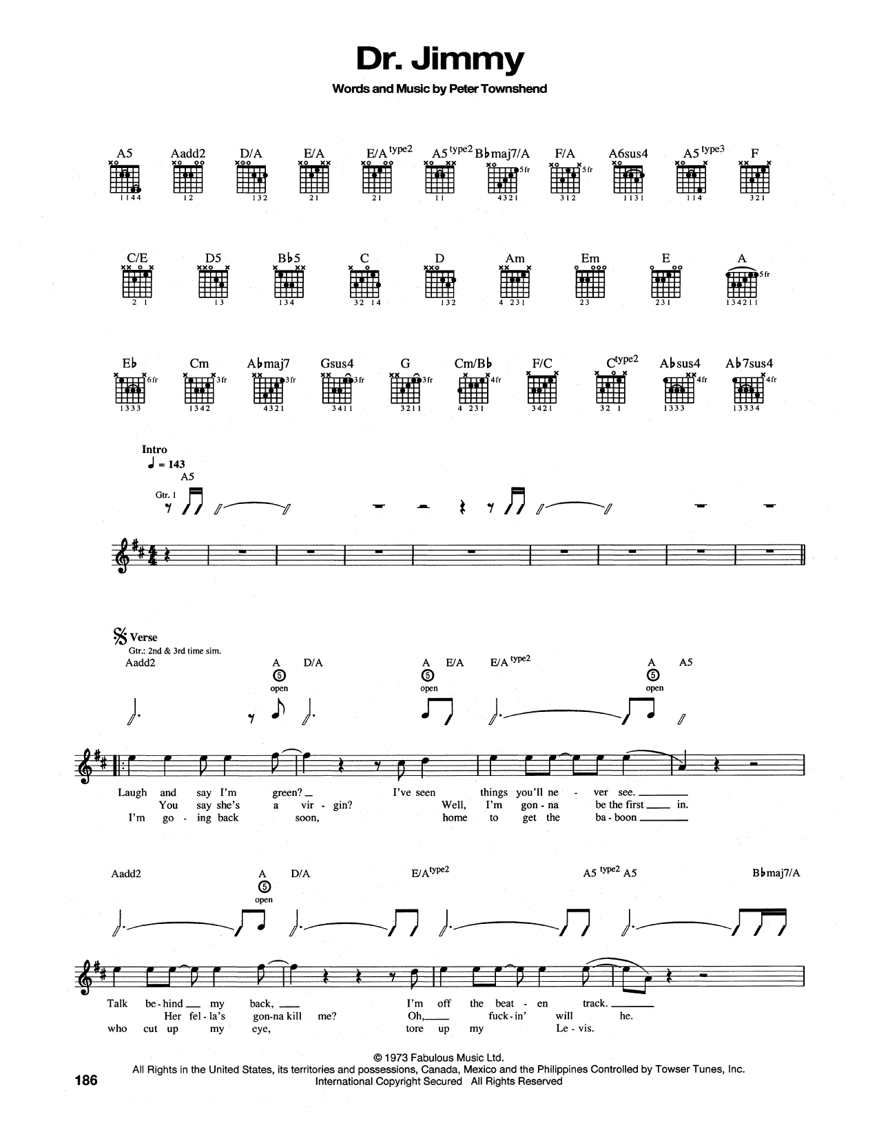 The Who Dr. Jimmy sheet music, chords, lyrics - Printable PDF for Guitar Tab
