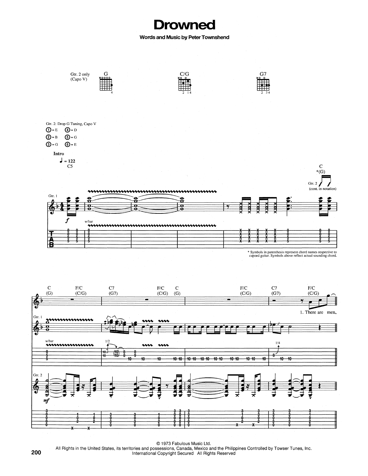 Download The Who Drowned sheet music and printable PDF notes for Guitar Tab. This score composition includes 12 page(s). It was wonderfuly put together for the style of Pop with catalog SKU number of 165283. Popular song was originally published on 2016-03-11T00:00:00 and was updated on 2020-11-06T00:00:00. The arrangement code for The Who sheet music is TAB and minimum required purchase quantaty of the digital score is 1. Learn more about The Who and click here ».