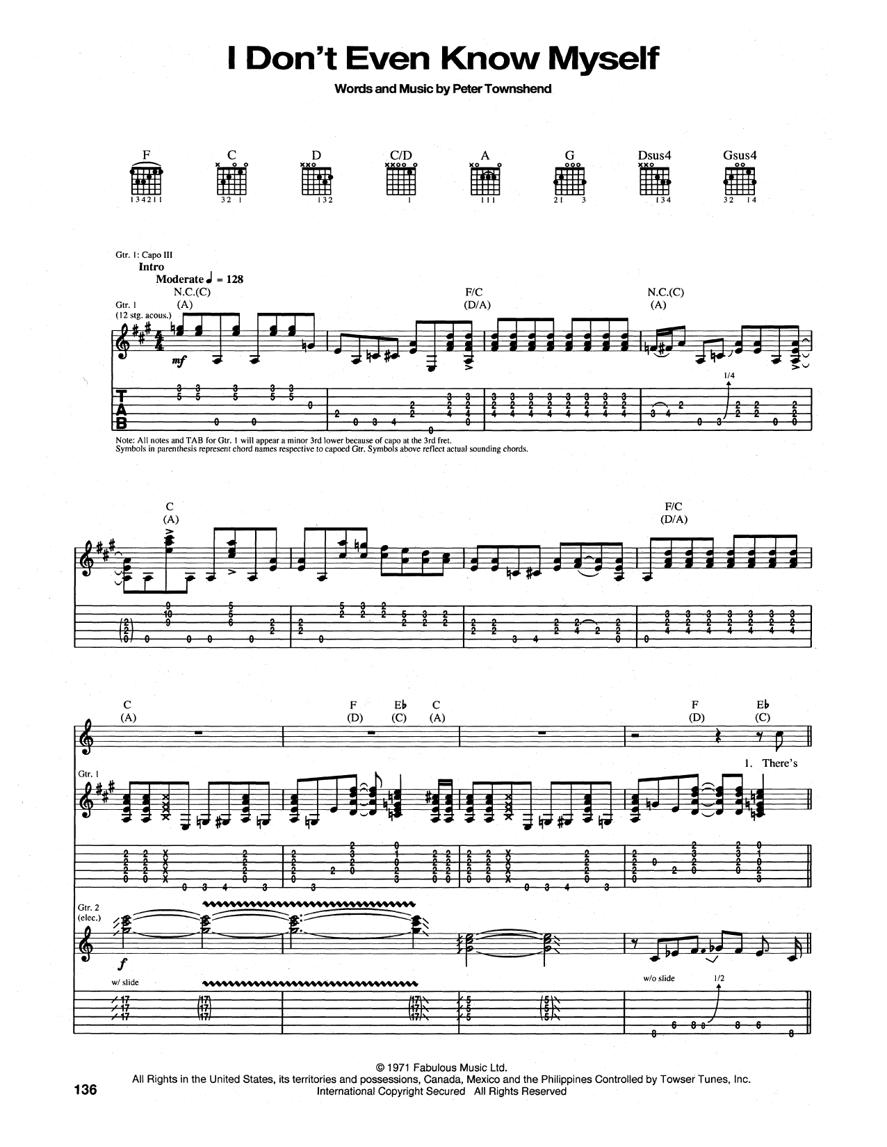 The Who I Don't Even Know Myself sheet music, chords, lyrics - Printable PDF for Guitar Tab