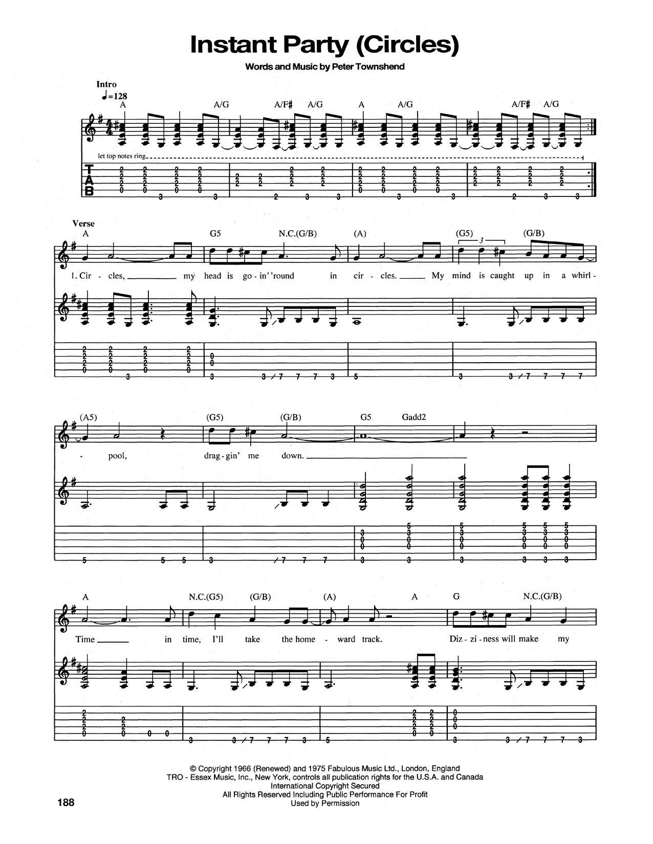 The Who Instant Party (Circles) sheet music, chords, lyrics - Printable PDF for Guitar Tab