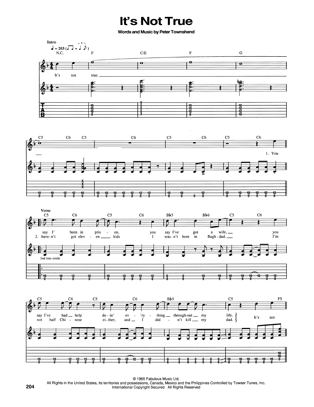 The Who It's Not True sheet music, chords, lyrics - Printable PDF for Guitar Tab
