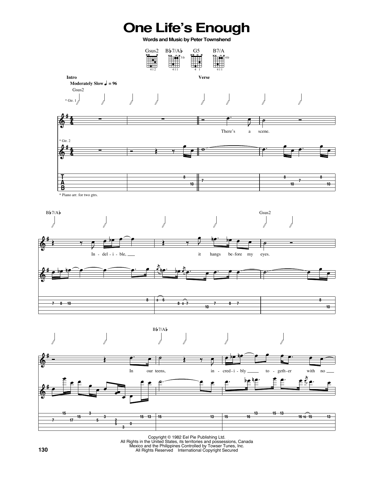 The Who One Life's Enough sheet music, chords, lyrics - Printable PDF for Guitar Tab