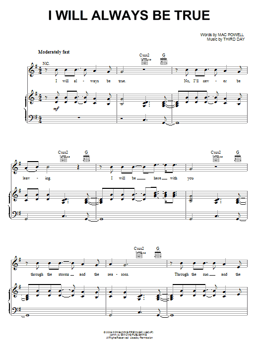 Third Day I Will Always Be True sheet music, chords, lyrics - Printable PDF for Piano, Vocal & Guitar (Right-Hand Melody)