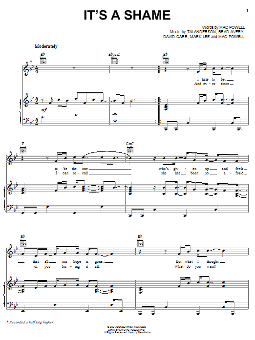 Third Day It's A Shame sheet music, chords, lyrics - Printable PDF for Piano, Vocal & Guitar (Right-Hand Melody)