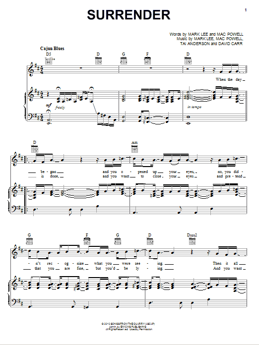 Third Day Surrender sheet music, chords, lyrics - Printable PDF for Piano, Vocal & Guitar (Right-Hand Melody)