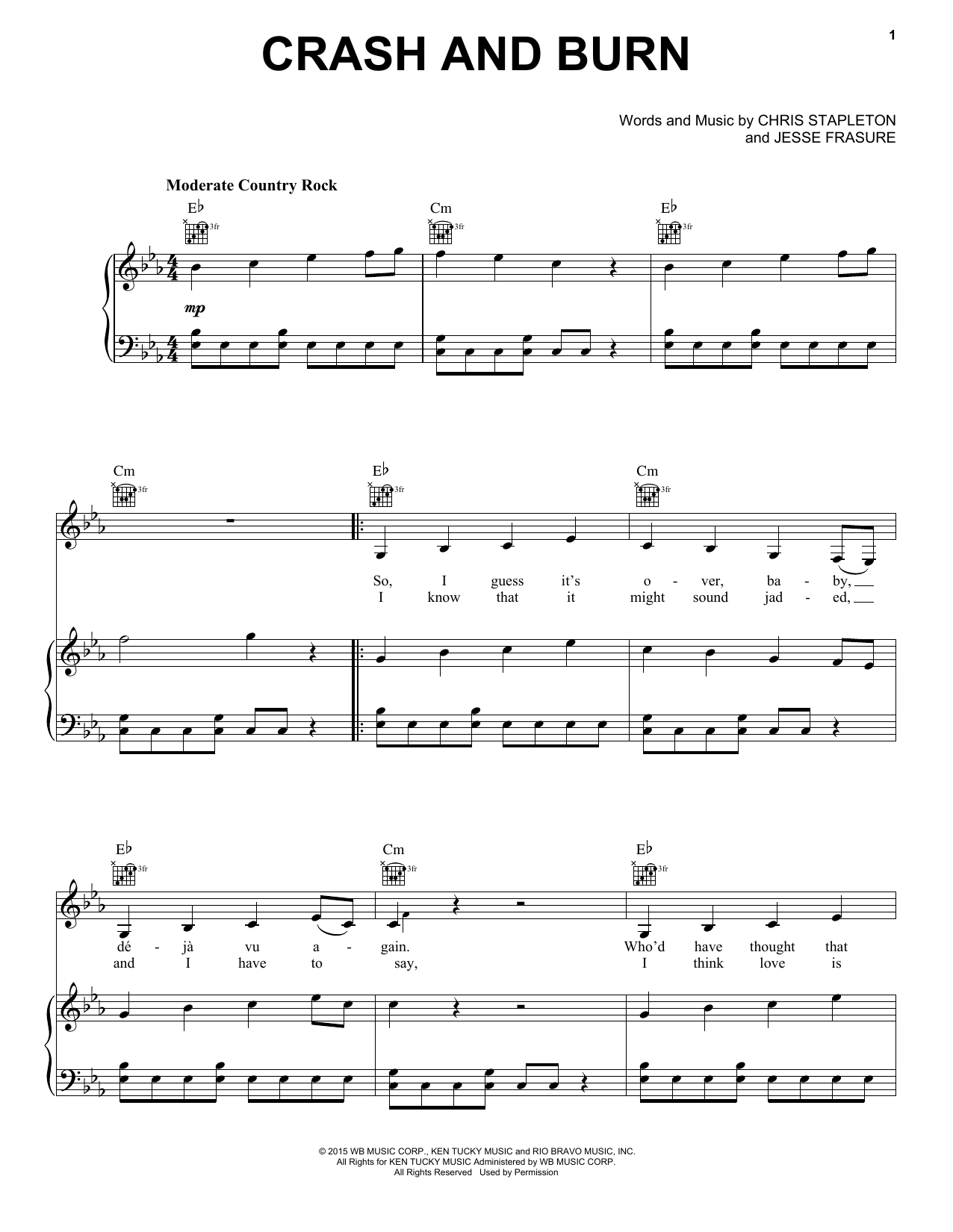 Thomas Rhett Crash And Burn sheet music, chords, lyrics - Printable PDF for Piano, Vocal & Guitar (Right-Hand Melody)