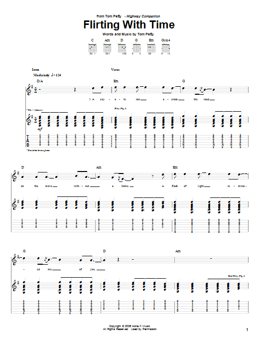 Tom Petty Flirting With Time sheet music, chords, lyrics - Printable PDF for Guitar Tab
