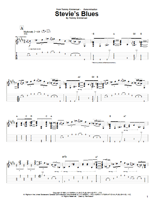 Tommy Emmanuel "Stevie's Blues" Sheet Music