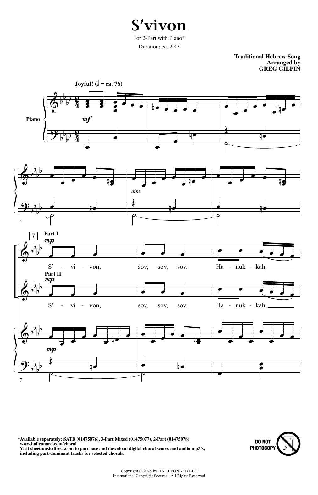S'vivon (arr. Greg Gilpin) Sheet Music Sample