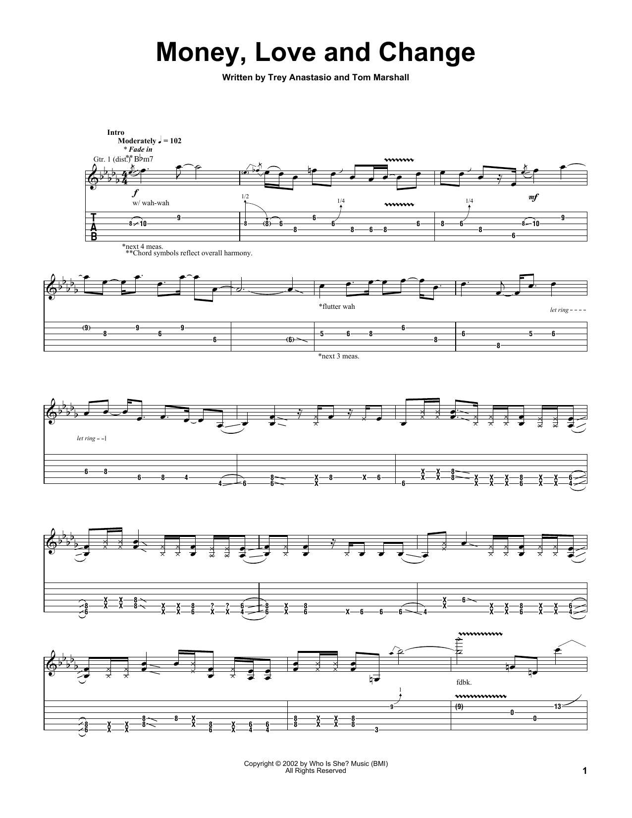 Download 7-Page Trey Anastasio Money, Love And Change sheet music | Printable PDF Digital Notes