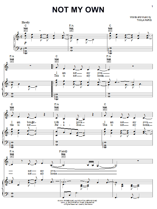 Twila Paris Not My Own sheet music, chords, lyrics - Printable PDF for Piano, Vocal & Guitar (Right-Hand Melody)