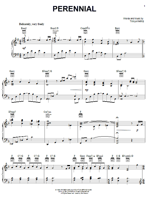 Twila Paris Perennial sheet music, chords, lyrics - Printable PDF for Piano, Vocal & Guitar (Right-Hand Melody)