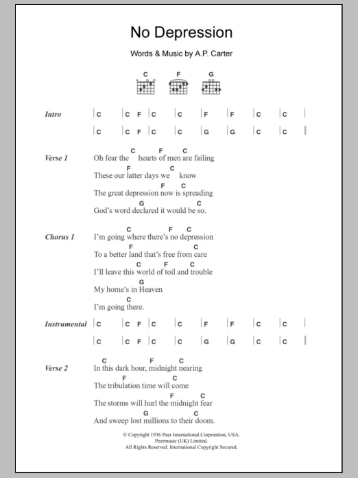 Uncle Tupelo No Depression sheet music, chords, lyrics - Printable PDF for Lyrics & Chords