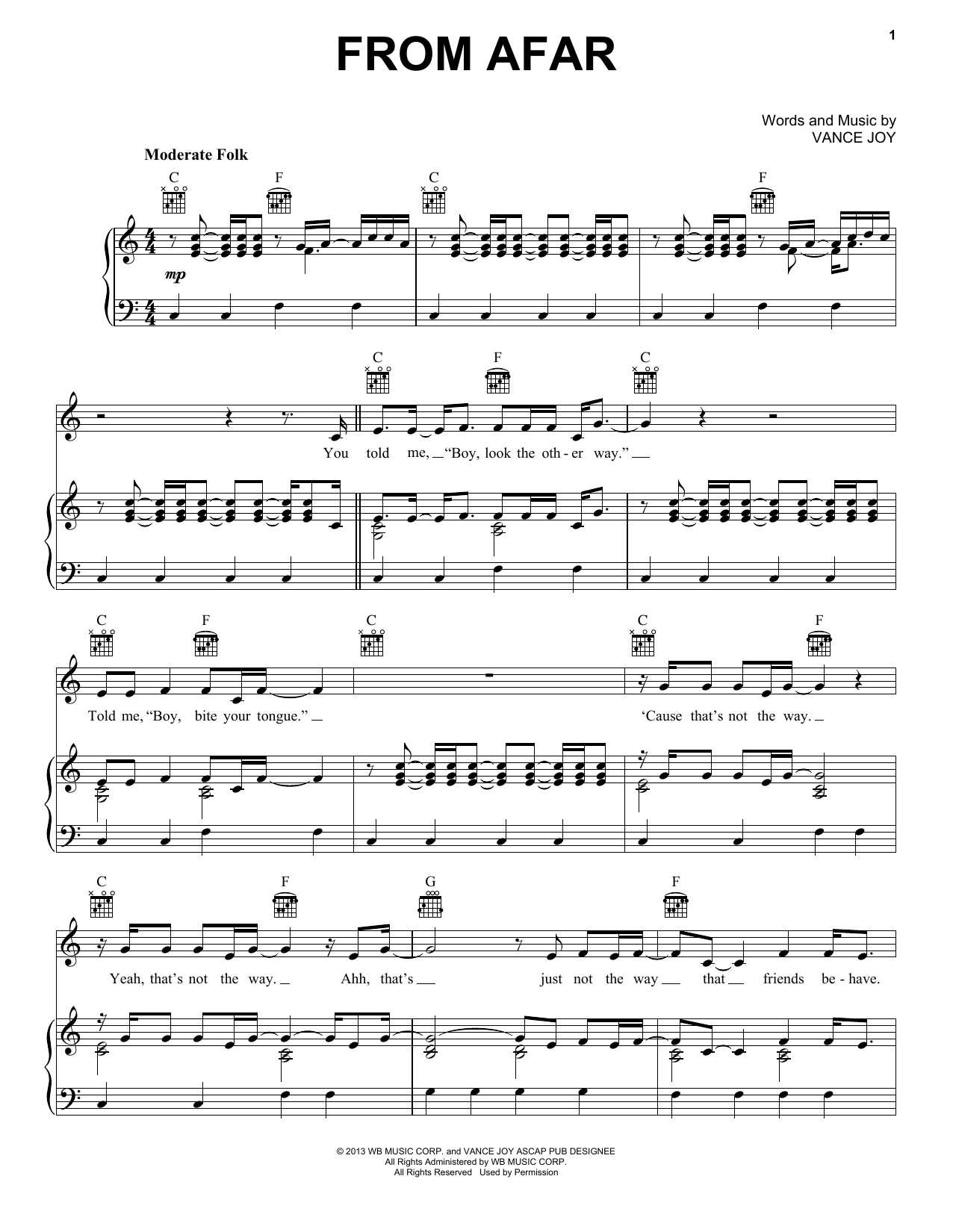Vance Joy From Afar sheet music, chords, lyrics - Printable PDF for Piano, Vocal & Guitar (Right-Hand Melody)