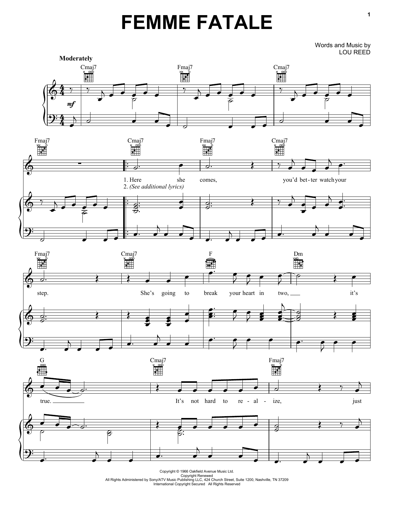Download 3-Page Velvet Underground Femme Fatale sheet music | Printable PDF Digital Notes