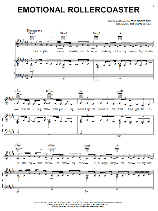 Vivian Green "Emotional Rollercoaster" Sheet Music