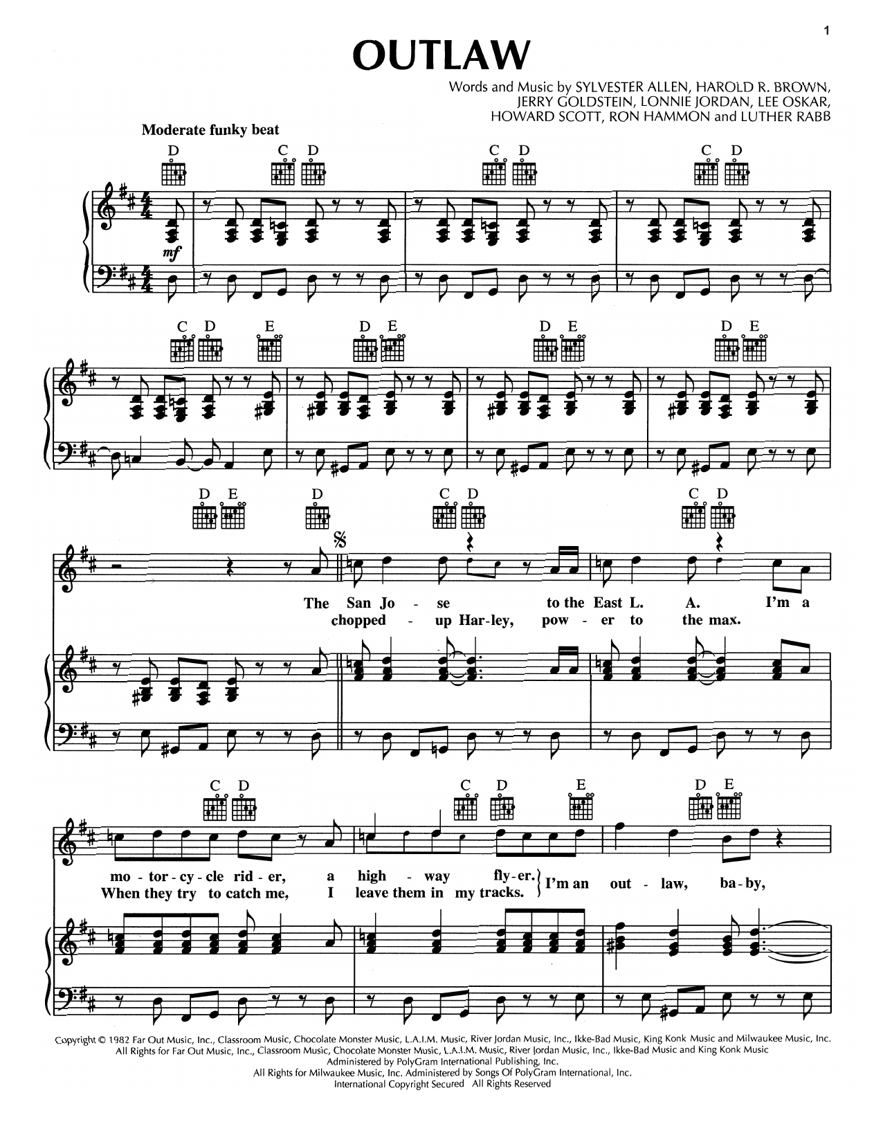 War "Outlaw" Sheet Music