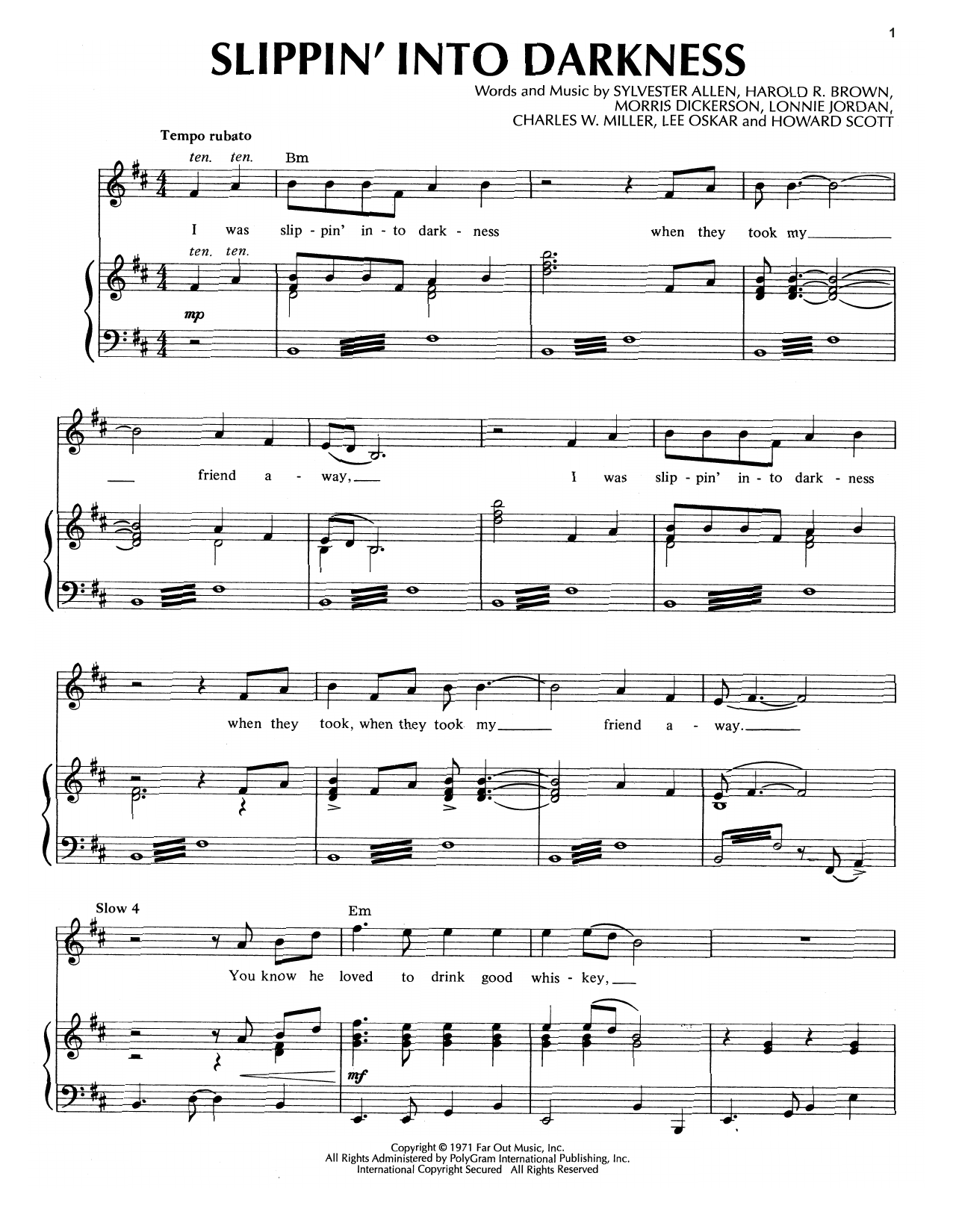 So, go ahead and download Slippin' Into Darkness sheet music and start playing this wonderful score in bare minutes.
