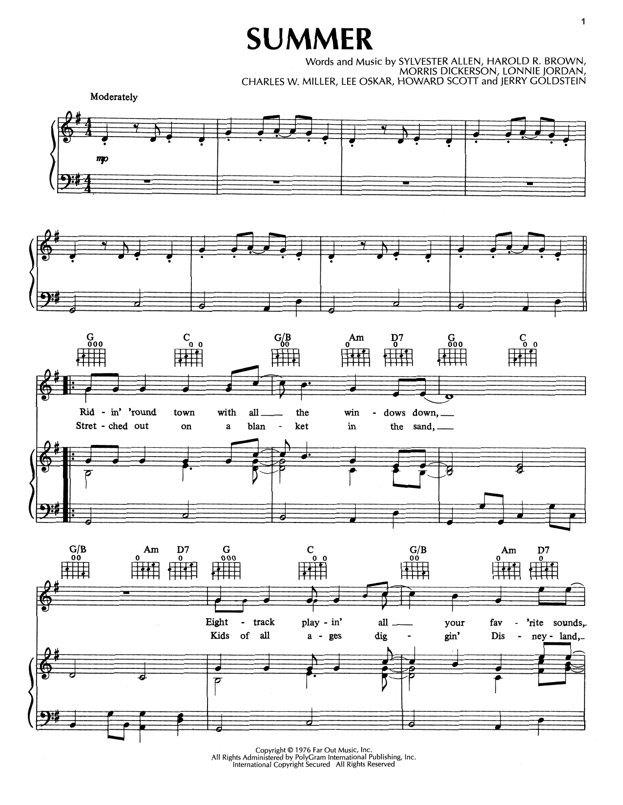 * Click playback or notes icon (wheel cog) at the bottom of the interactive music notes viewer and check "Summer" playback & transpose functionality prior to purchase.