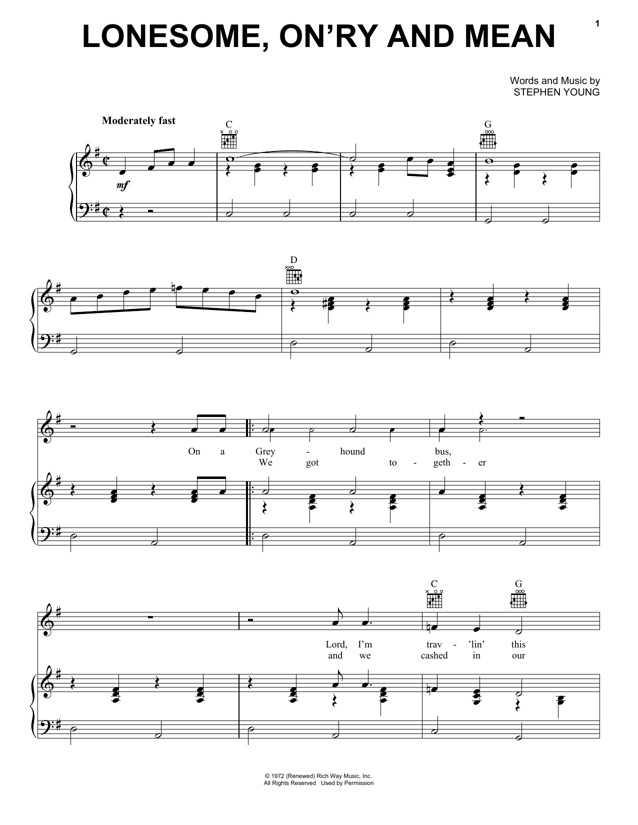 Lonesome, On'ry And Mean Sheet Music Sample