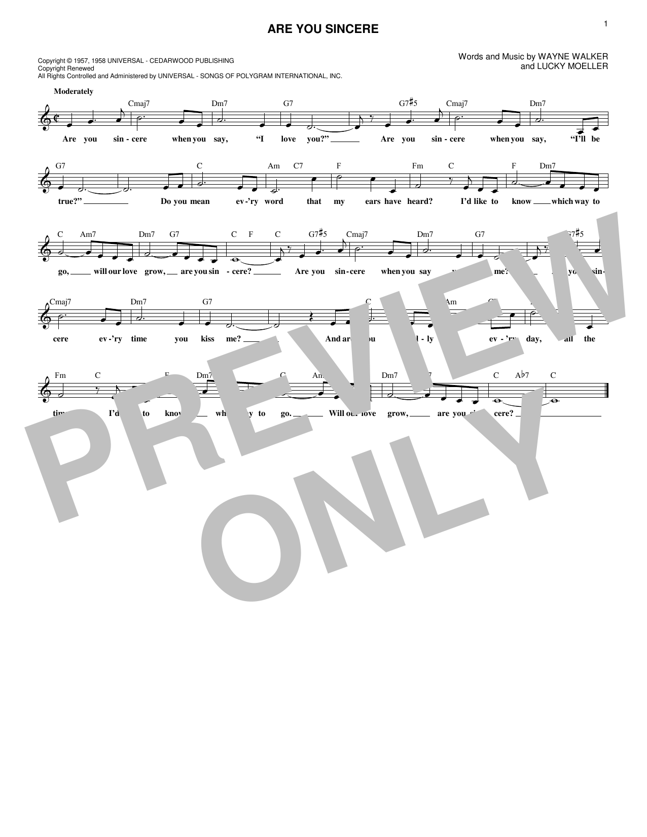 Download 1-Page Wayne Walker Are You Sincere sheet music | Printable PDF Digital Notes