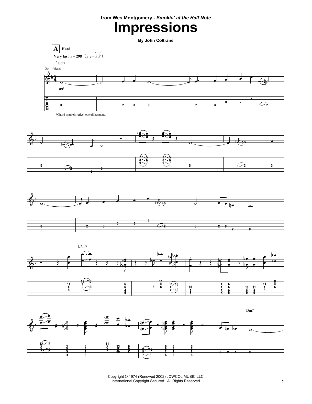 Wes Montgomery Impressions sheet music, chords, lyrics - Printable PDF for Guitar Tab