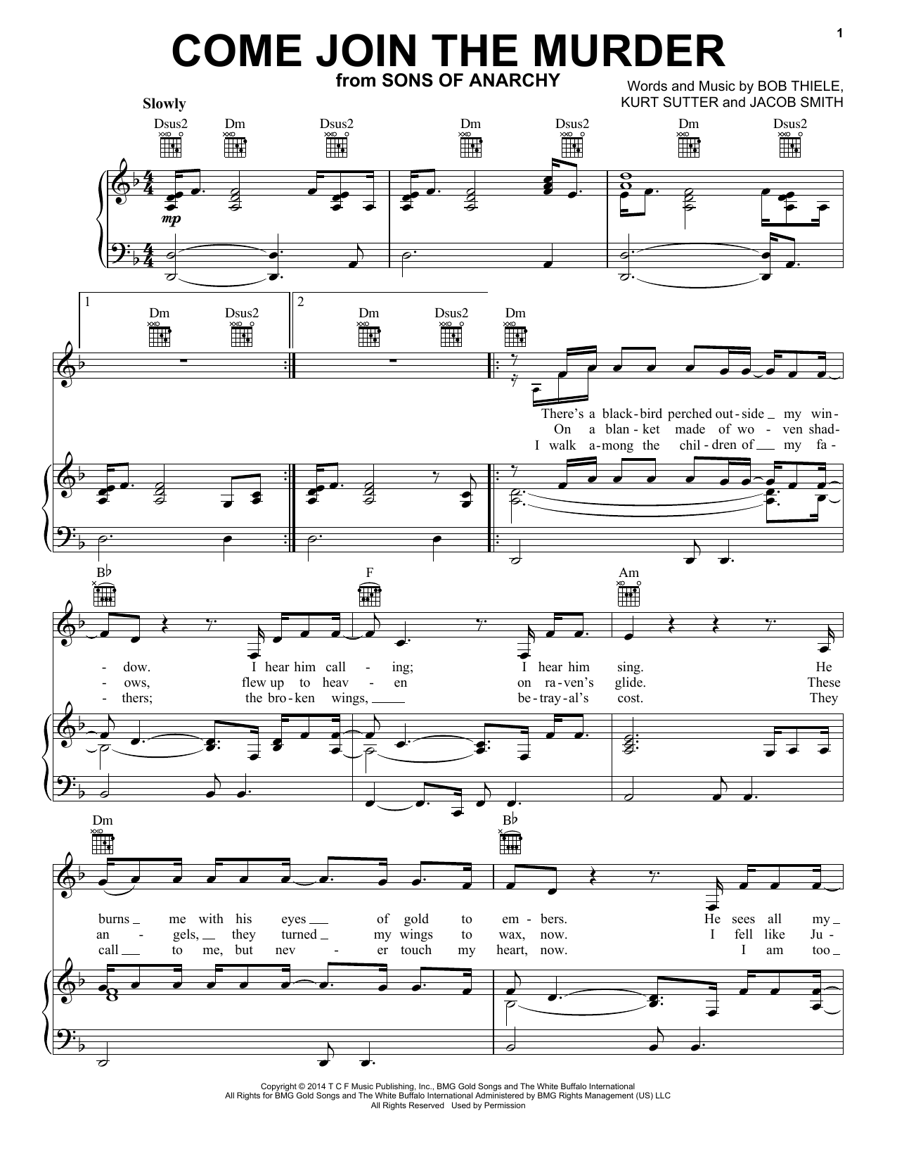 White Buffalo and The Forest Rangers Come Join The Murder sheet music, chords, lyrics - Printable PDF for Piano, Vocal & Guitar (Right-Hand Melody)