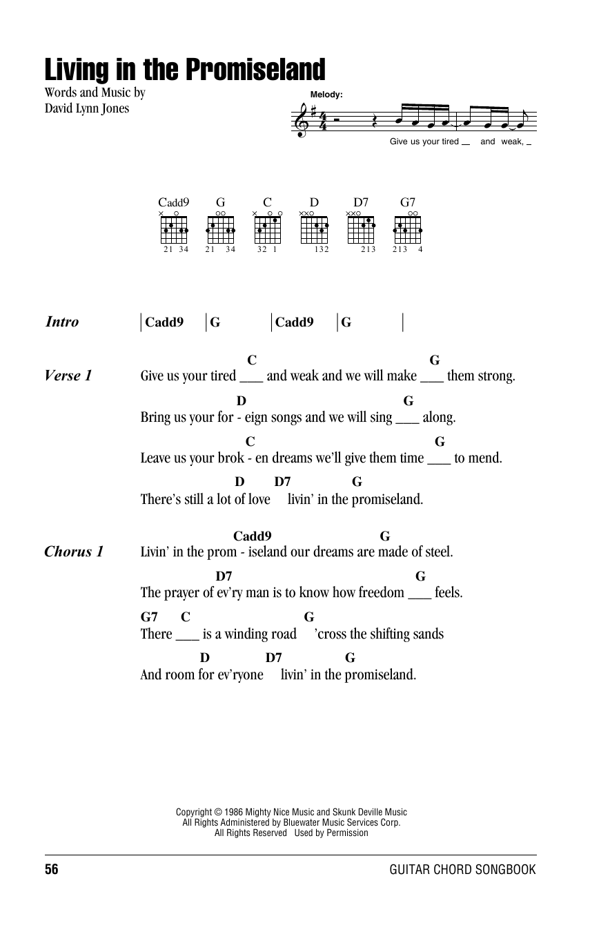 Willie Nelson Living In The Promiseland sheet music, chords, lyrics - Printable PDF for Lyrics & Chords